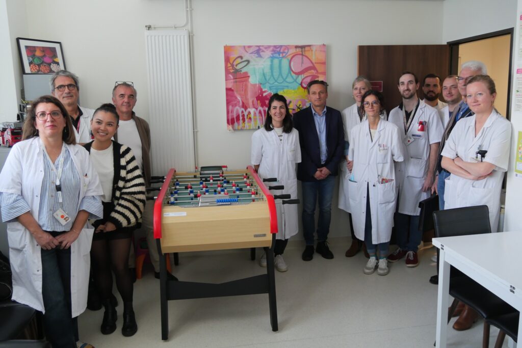 Les murs blancs de l’unité d’hématologie et la salle des familles ont pris de la couleur, à l’initiative de l’Apeco Sven et Yrak ont offert 3 peintures.